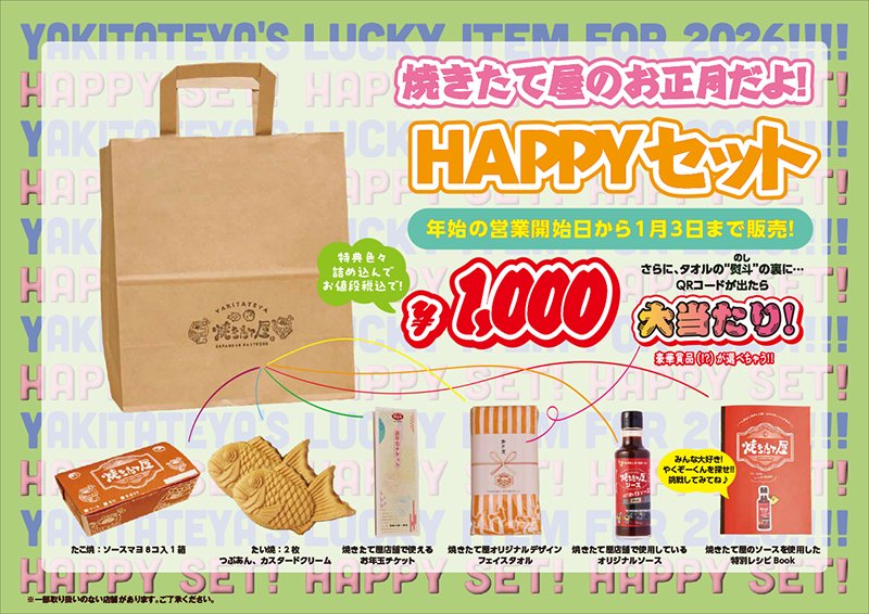 2026年も販売します♪毎年恒例の焼きたて屋福袋「お正月だよ!ハッピーセット」気になる今年の中身は…⁉
